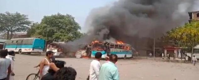 मुजफ्फरपुर जिले के बैरिया बस स्टैंड में लगी भीषण आग, धू-धूकर जली तीन बसें, मची अफरा-तफरी*