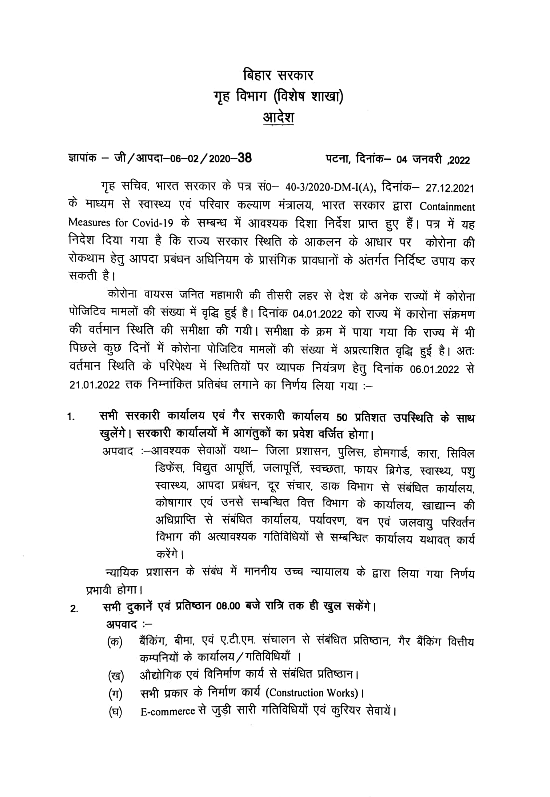 - सभी दुकानें और प्रतिष्ठान 8:00 बजे रात तक ही खुले रहेंगे।