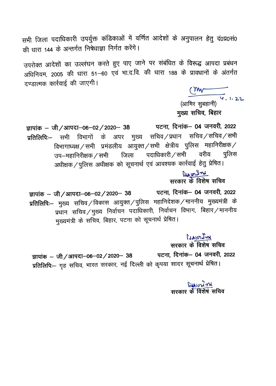 बिहार में 21 जनवरी तक नाइट कर्फ्यू:दुकान 8 बजे तक ही खुलेंगे, मॉल-पार्क-जिम बंद, शादियों में भी 50 को ही अनुमति