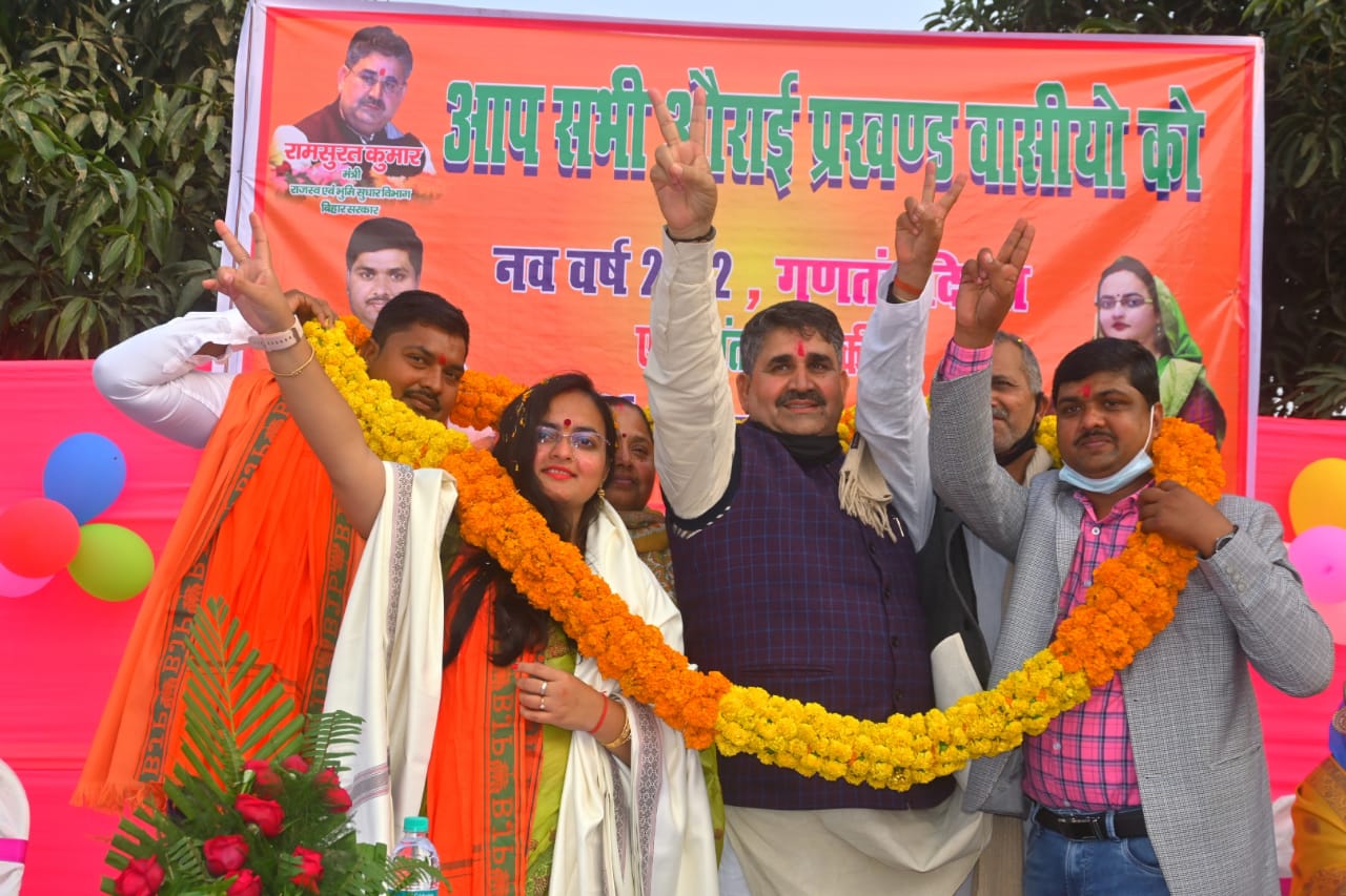 इससे पुर्व प्रखंड कार्यालय में प्रमुख अनामिका भारती एवं उपप्रमुख ने मंत्री की उपस्थिति में पदभार ग्रहण किया।