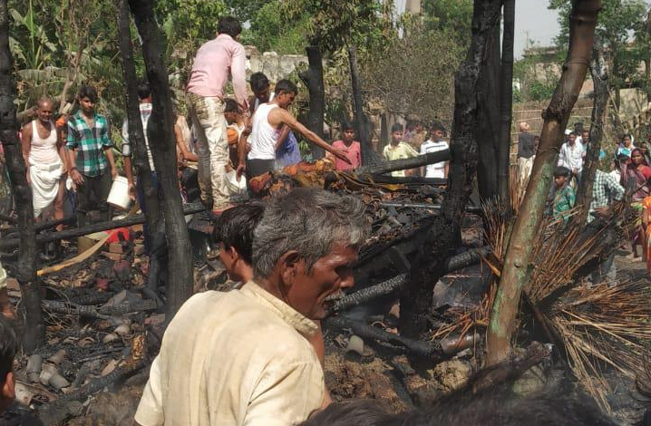 औराई थाना क्षेत्र अंतर्गत राजखंड उत्तरी पंचायत के रामखेतारी घुसुकपुर टोला पर शुक्रवार की दोपहर बाद करीब 2 बजे बिकाऊ शर्मा के घर में बिजली के तार शार्ट करने से उठी चिंगारी में बुरी तरह आग लग गया। आग लगने से अफरा तफरी का माहौल मच गया और बिजली के तार के भय से लोग आग पर काबू पाने के लिए तत्परता तो दिखाई पर नजदीक नहीं पहुंच रहे थे ,इसी बीच आग की लपट तेज हो गई और इस आग में बिकाऊ शर्मा के अलावे लालबाबु शर्मा, प्रमोद शर्मा ,व पुकार सहनी का घर जलकर बुरी तरह राख हो गया। इस दौरान विकास शर्मा का दो गाय व तीन बकरी जिंदा जलकर मर गया । जबकि अमित शर्मा का नगदी 28 हजार रुपये भी जलकर राख हो गया। सभी पीडित 4 परिवारों में कपड़ा ,अनाज मकान 1 नगदी समेत तकरीबन पांच लाख की क्षति होने का अनुमान लगाया जा रहा है । इसी बीच सीओ ज्ञानानंद के निर्देशानुसार पहुंचे राजस्व कर्मचारी व सहयोगी दिलीप चौधरी ने पीड़ित परिवारों का जायजा लिया और क्षति का आकलन किया। वही मौके पर पहुंचे श्री राम साह, बसंत शाही, लालबाबू बारी, सुजीत सहनी, बलम सहनी ,अश्वनी शरण, अच्छे भाई ,संतोष शर्मा, शशि शर्मा , मौसम सहनी समेत दर्जनों लोगों ने अपने बूते जनरेटर चालू कर ग्रामीण पंपसेट के सहारे आग पर काबू पाने का भरसक प्रयास किया और लोग सफल रहे। गांव में घरों की आबादी घनत्व होने की वजह से 200 मकानों पर खतरा मंडरा रहा था, जिसे स्थानीय लोगों की मदद से आग पर काबू पा लिया गया और तमाम घर जलने से बच गए। इसी बीच सूचना पर पहुंचे अग्निशमन की टीम ने पुर्ण रुप ले आग पर काबु पा लिया। सीओ ज्ञानानंद ने बताया की सभी पीड़ित परिवारों को सरकारी मुआवजा मुहैया कराया जाएगा इसकी प्रक्रिया आरंभ कर दी गई है।